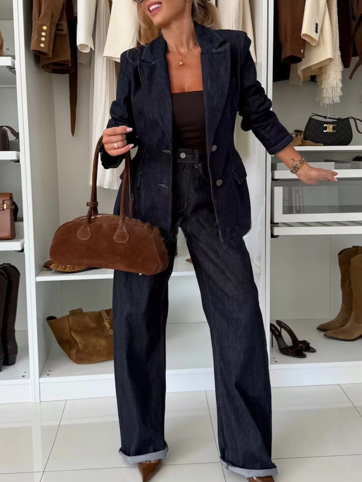 High-Waisted Wide-Leg Washed Jeans - Dark Navy / S