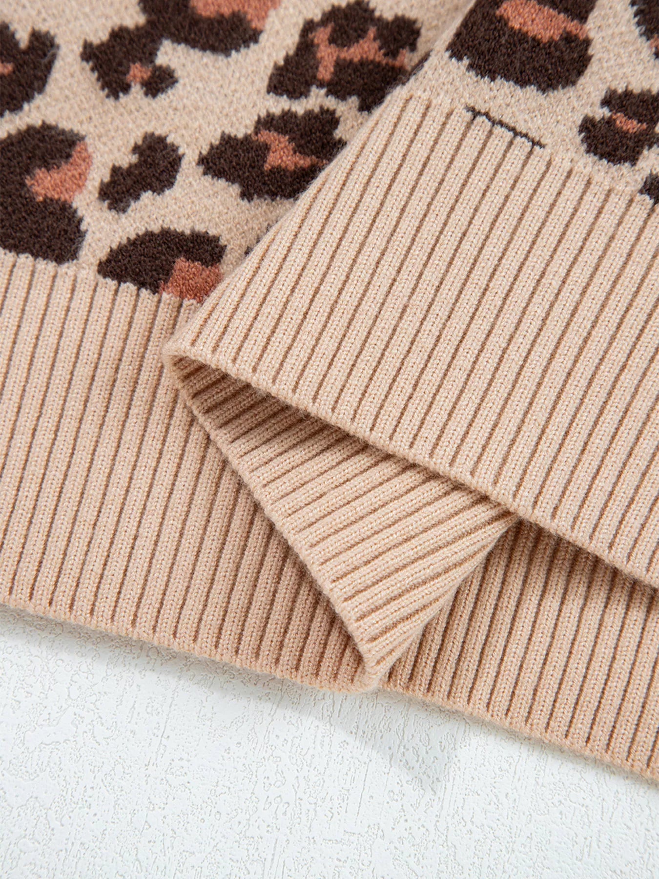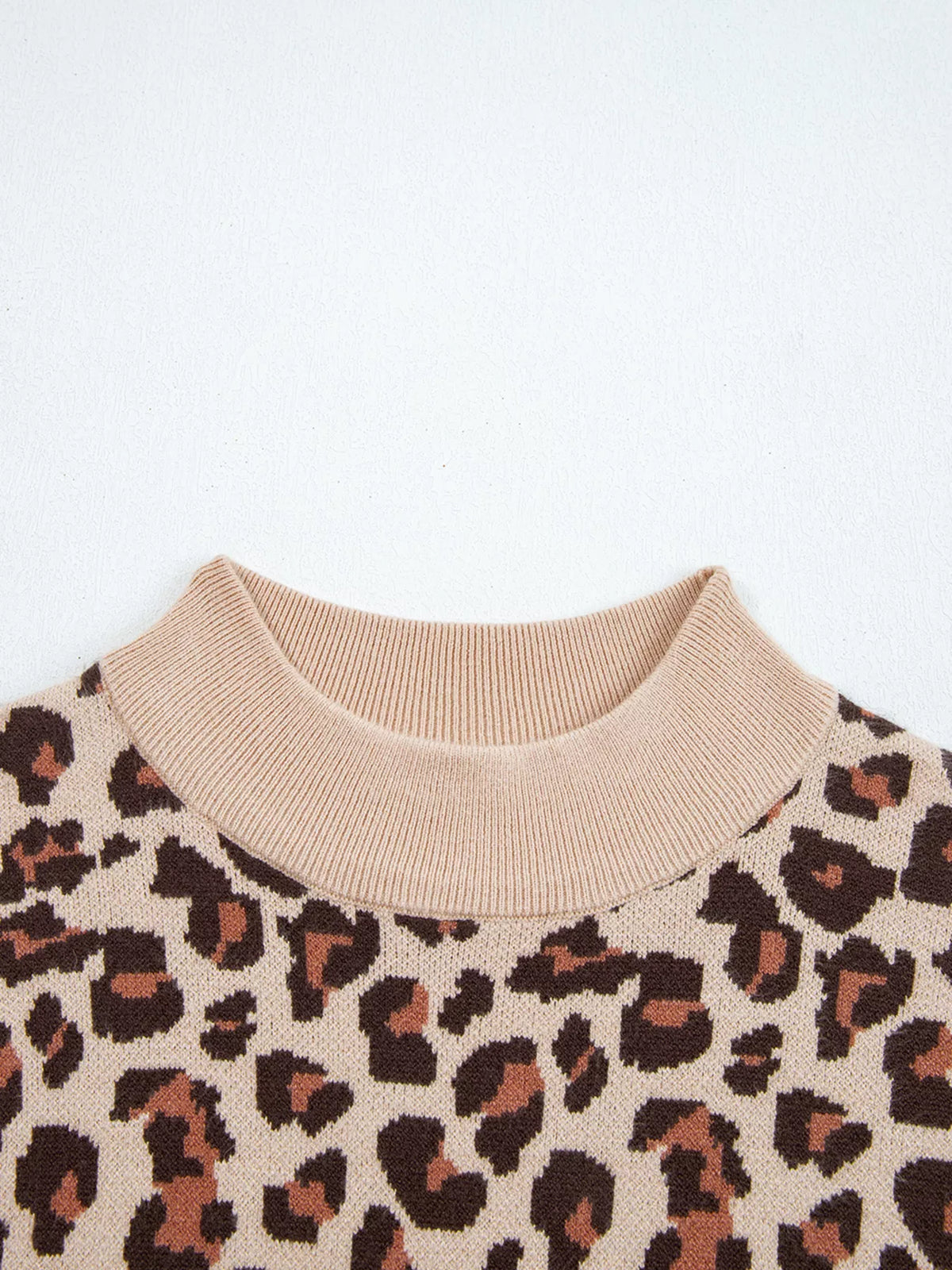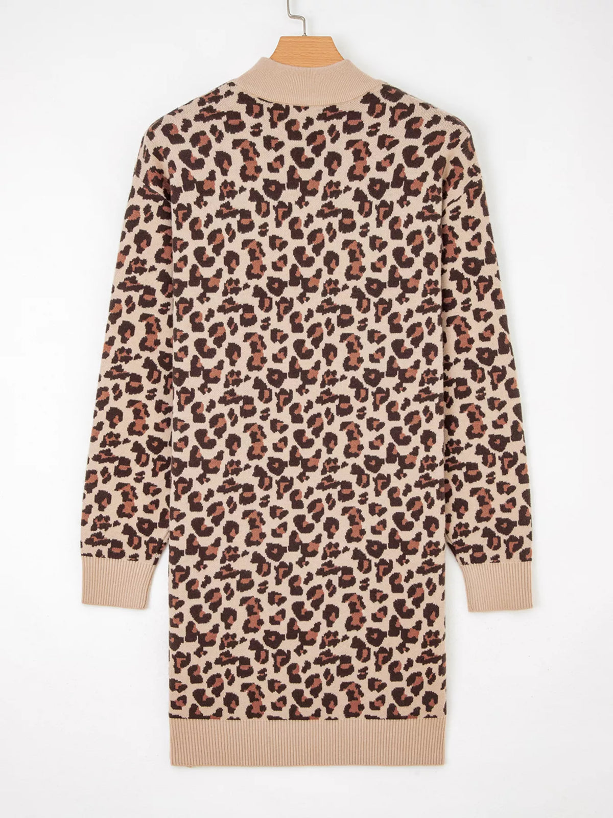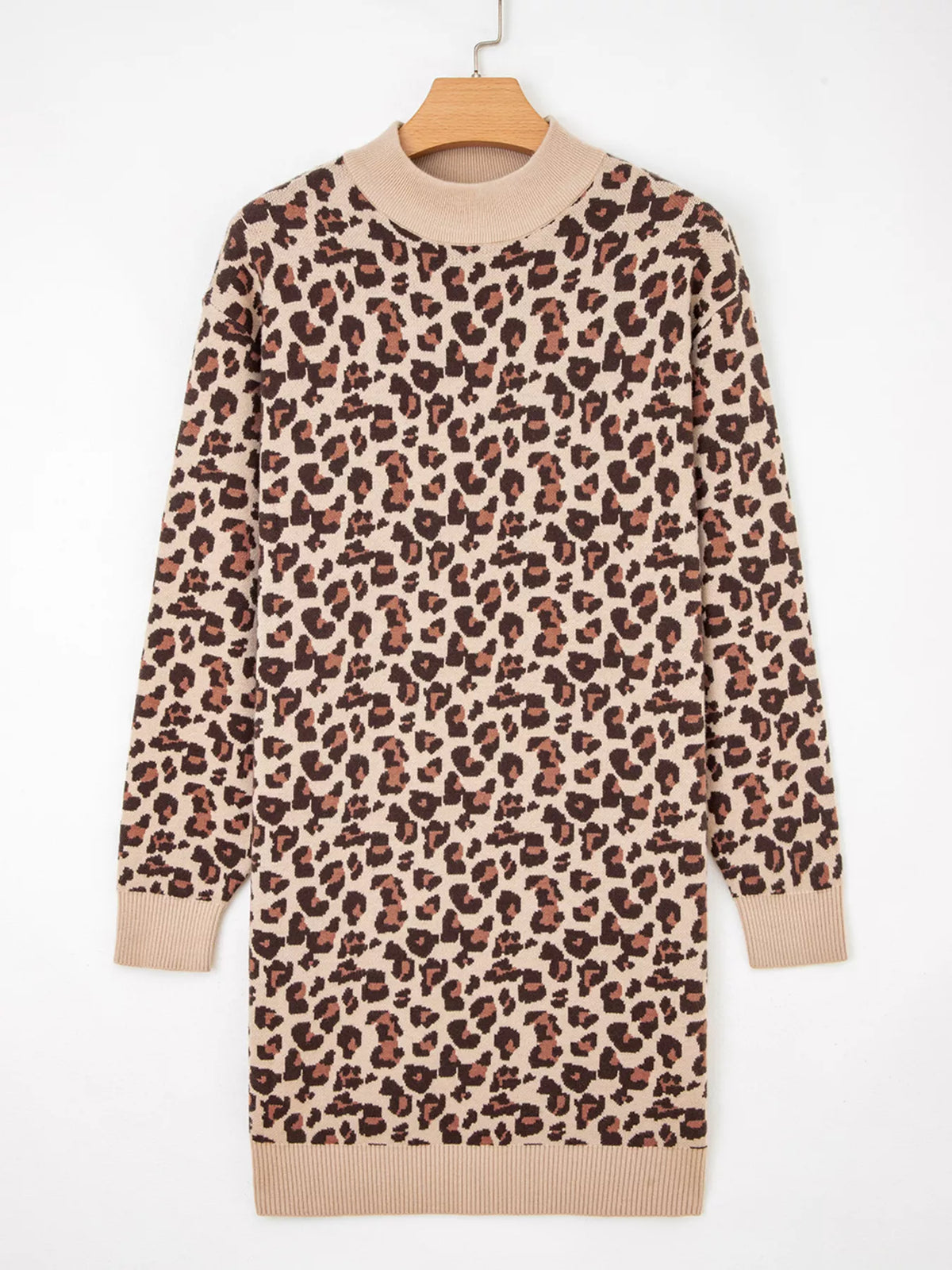 Inform when this item available Leopard Print High Neck Shift Mini Sweater Dress
