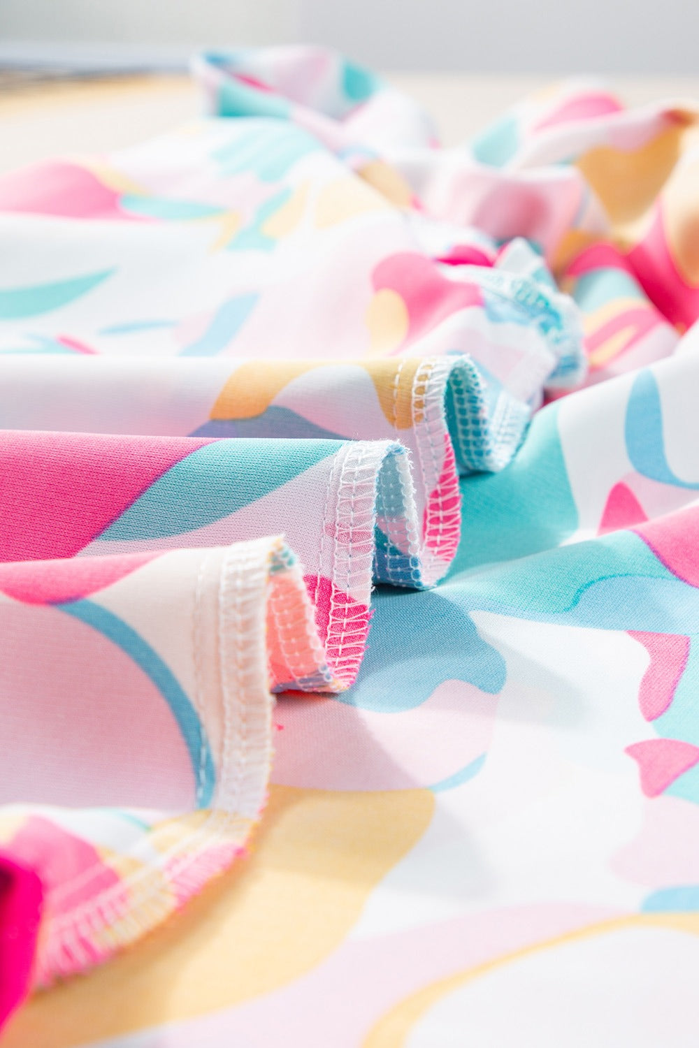 Inform when this item available Plus Size Ruffled Printed Notched Cap Sleeve Blouse