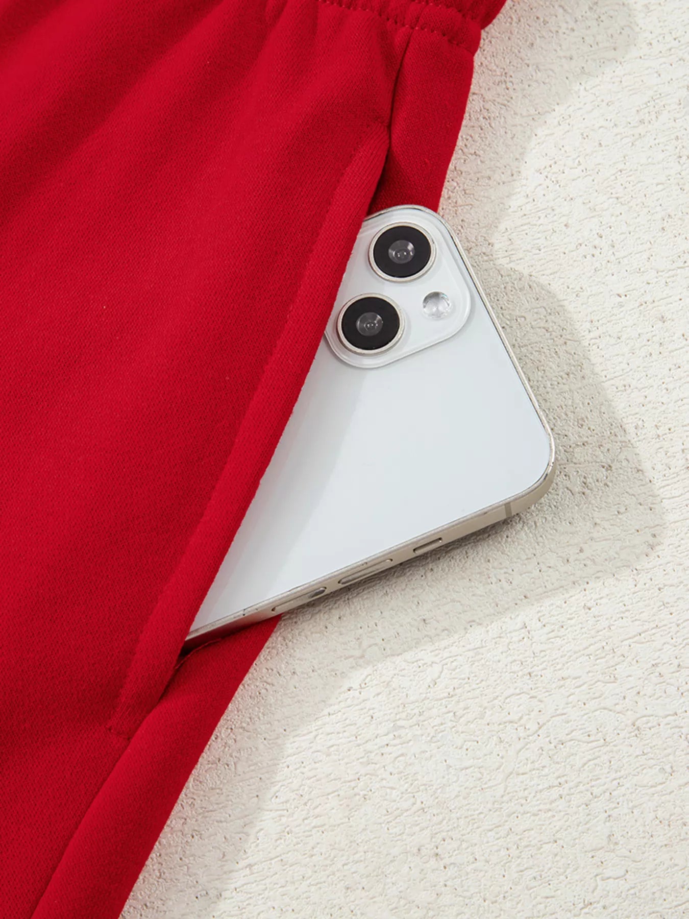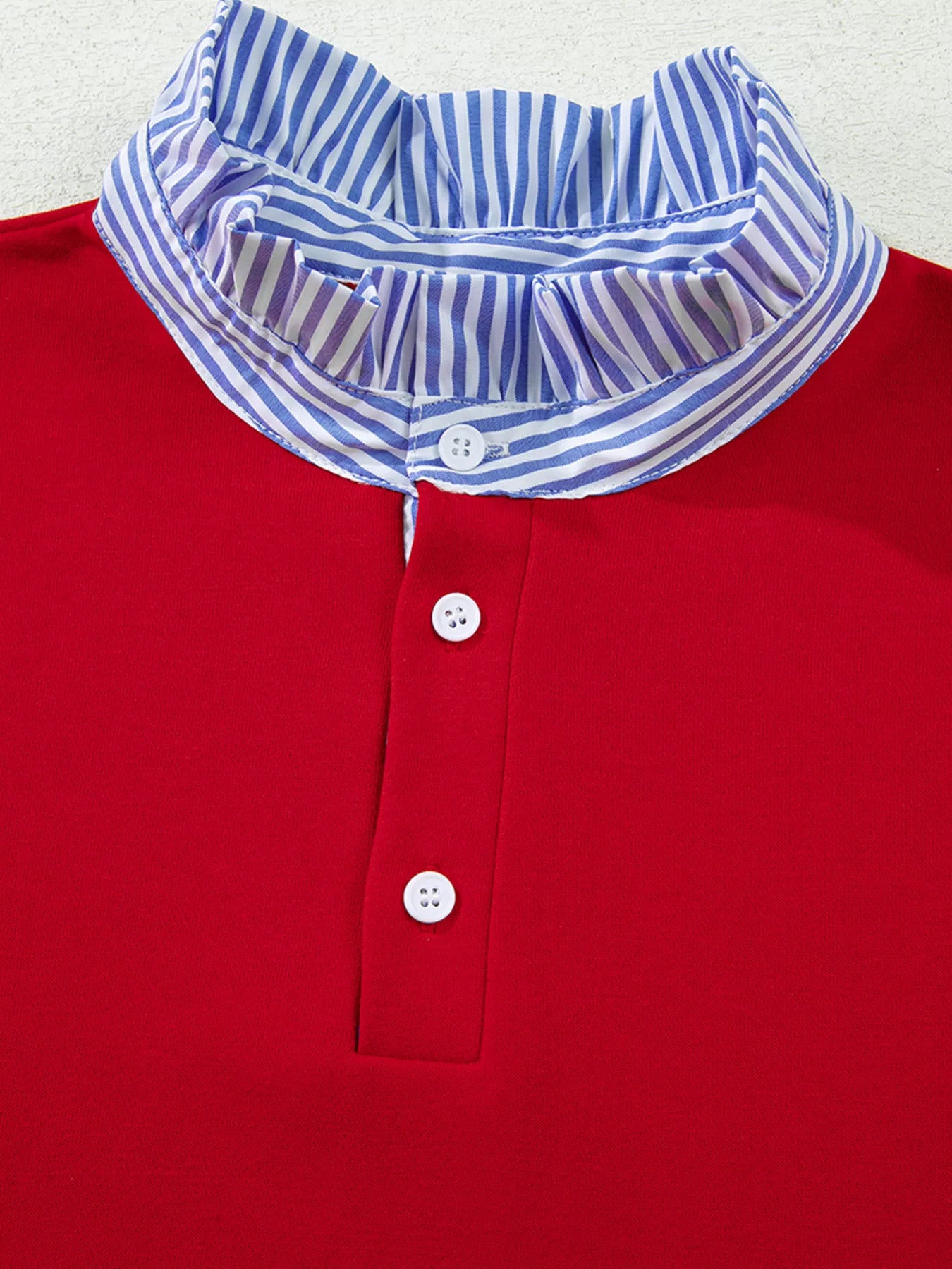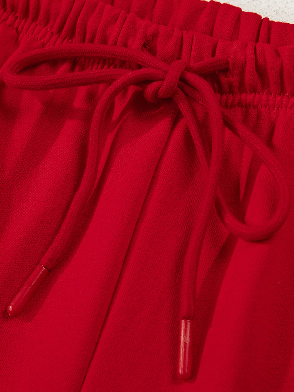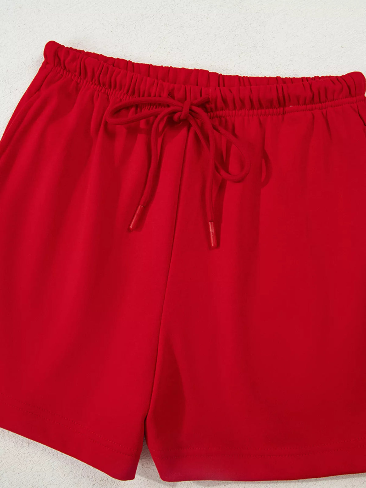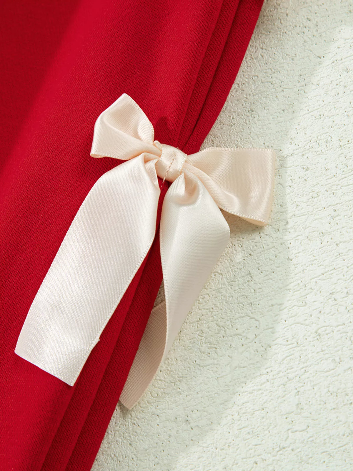 Striped Collar Patchwork Satin Bow Sweatshirt and Shorts Set - Deep Red / S