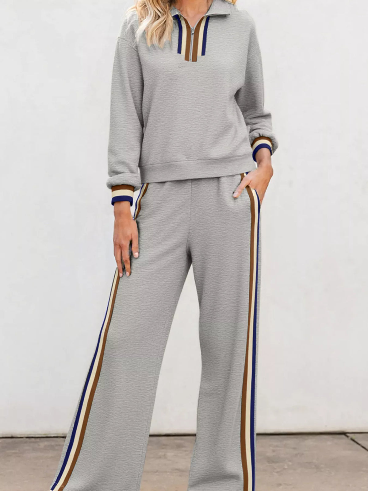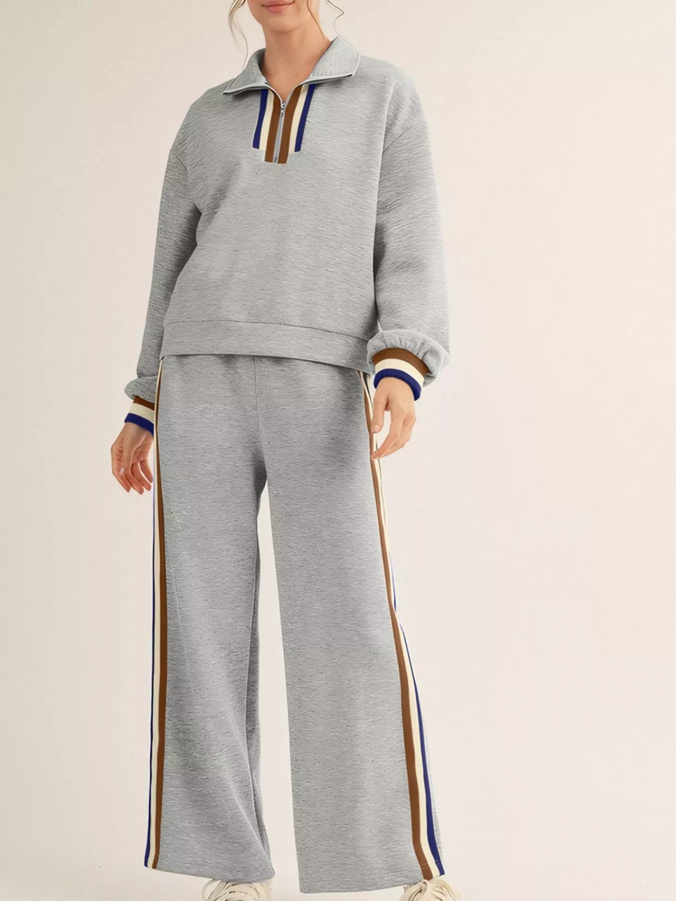 Casual Striped Trim Top and Pants Set